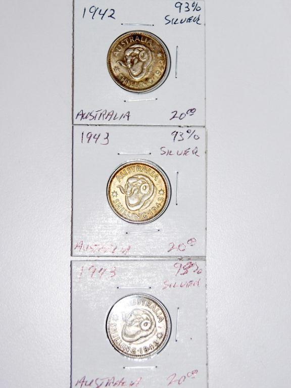 (1) 1942 and (2) 1943 Australian Shillings - Graded Almost Uncirculated - 93 % Silver - Sold Times the Money 1942 & 1943 Almost UC Australian Shillings