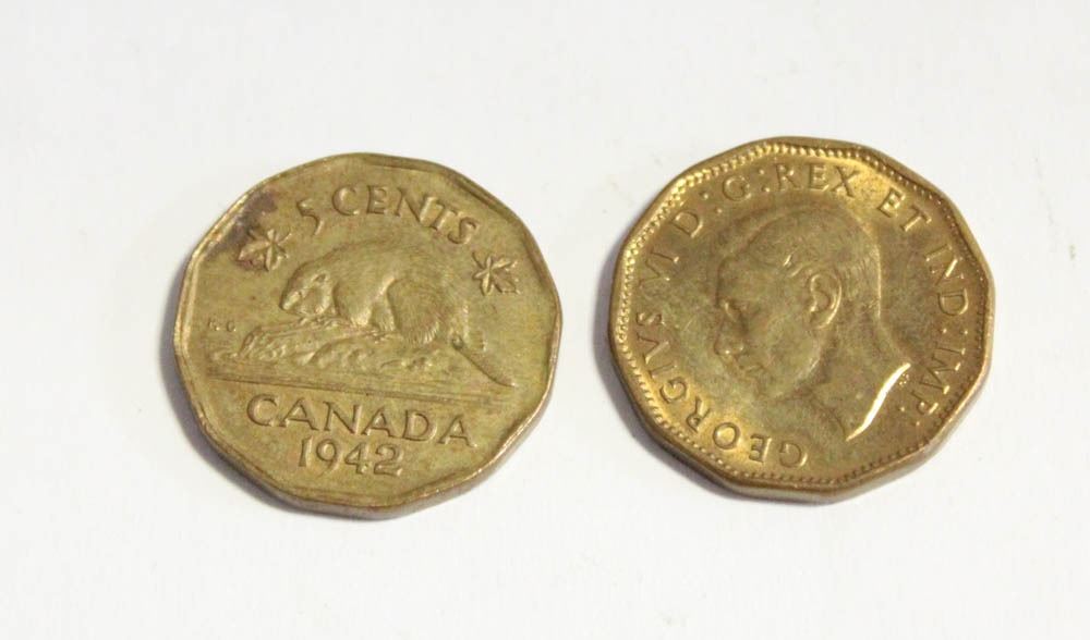 1942 & 1943 CANADA WWII TOMBAC NICKELS
