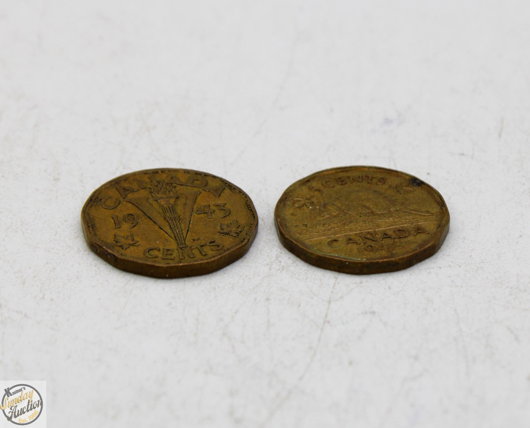 1942/1943 LOT OF 2 WWII CANADA TOMBAC NICKELS