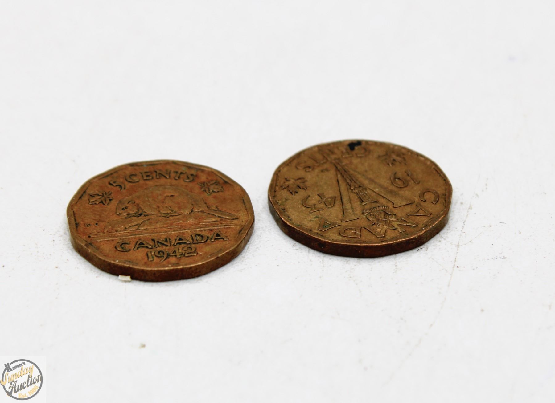 1942/1943 LOT OF 2 WWII CANADA TOMBAC NICKELS