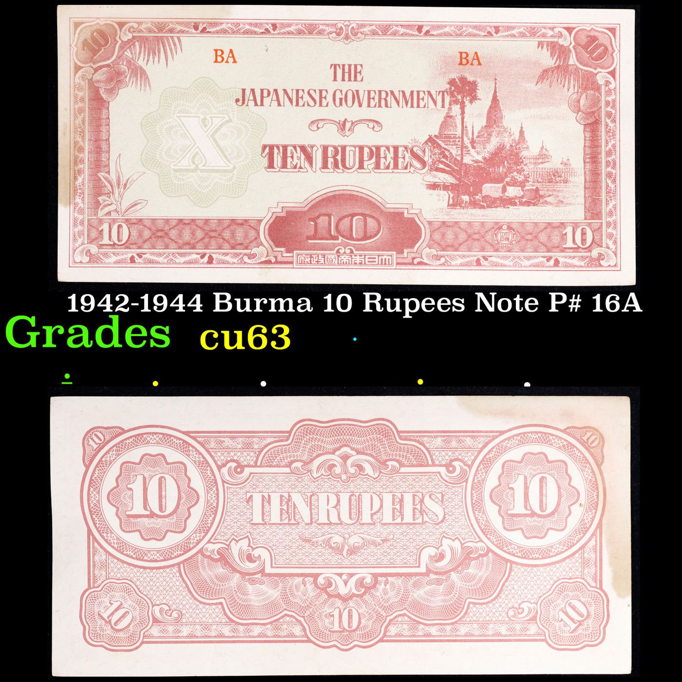 1942-1944 Burma 10 Rupees Note P# 16A Grades Select CU.