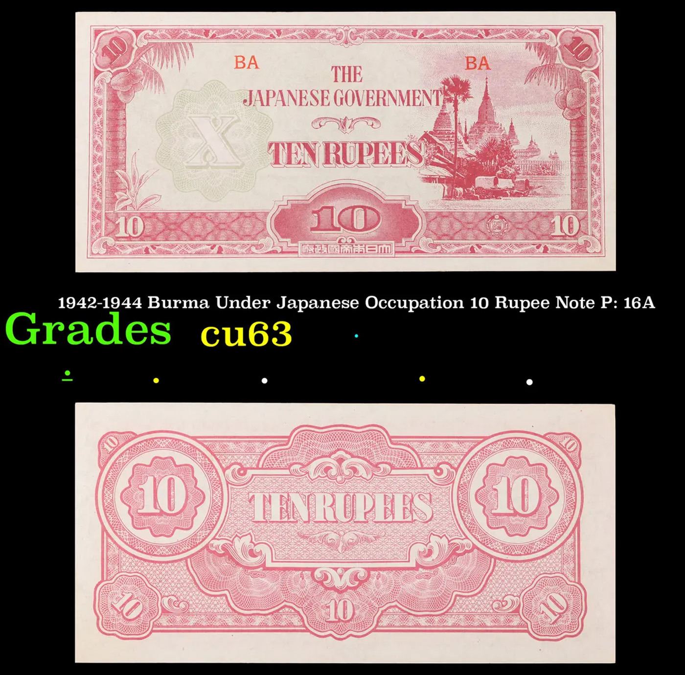 1942-1944 Burma Under Japanese Occupation 10 Rupee Note P: 16A Grades Select CU. Japanese invasion money, officially known as Southern Development Bank Notes (Japanese: ??????? Dai T?-A Sens? gunpy?, "Greater East Asia War military scrip"), was currency issued by the Japanese Military Authority as a replacement for local currency after the conquest of colonies and other states in World War II. Japan printed this currency for many countries, including Malaysia, Singapore, North Borneo, Sarawak, Burma, Brunei, and several Oceania territories controlled by Australia.