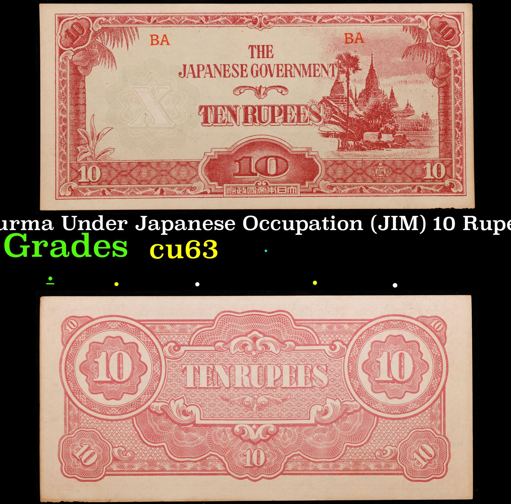 1942-1944 Burma Under Japanese Occupation (JIM) 10 Rupee Note P# 16A Grades Select CU. Japanese invasion money, officially known as Southern Development Bank Notes (Japanese: ??????? Dai T?-A Sens? gunpy?, "Greater East Asia War military scrip"), was currency issued by the Japanese Military Authority as a replacement for local currency after the conquest of colonies and other states in World War II. Japan printed this currency for many countries, including Malaysia, Singapore, North Borneo, Sarawak, Burma, Brunei, and several Oceania territories controlled by Australia.