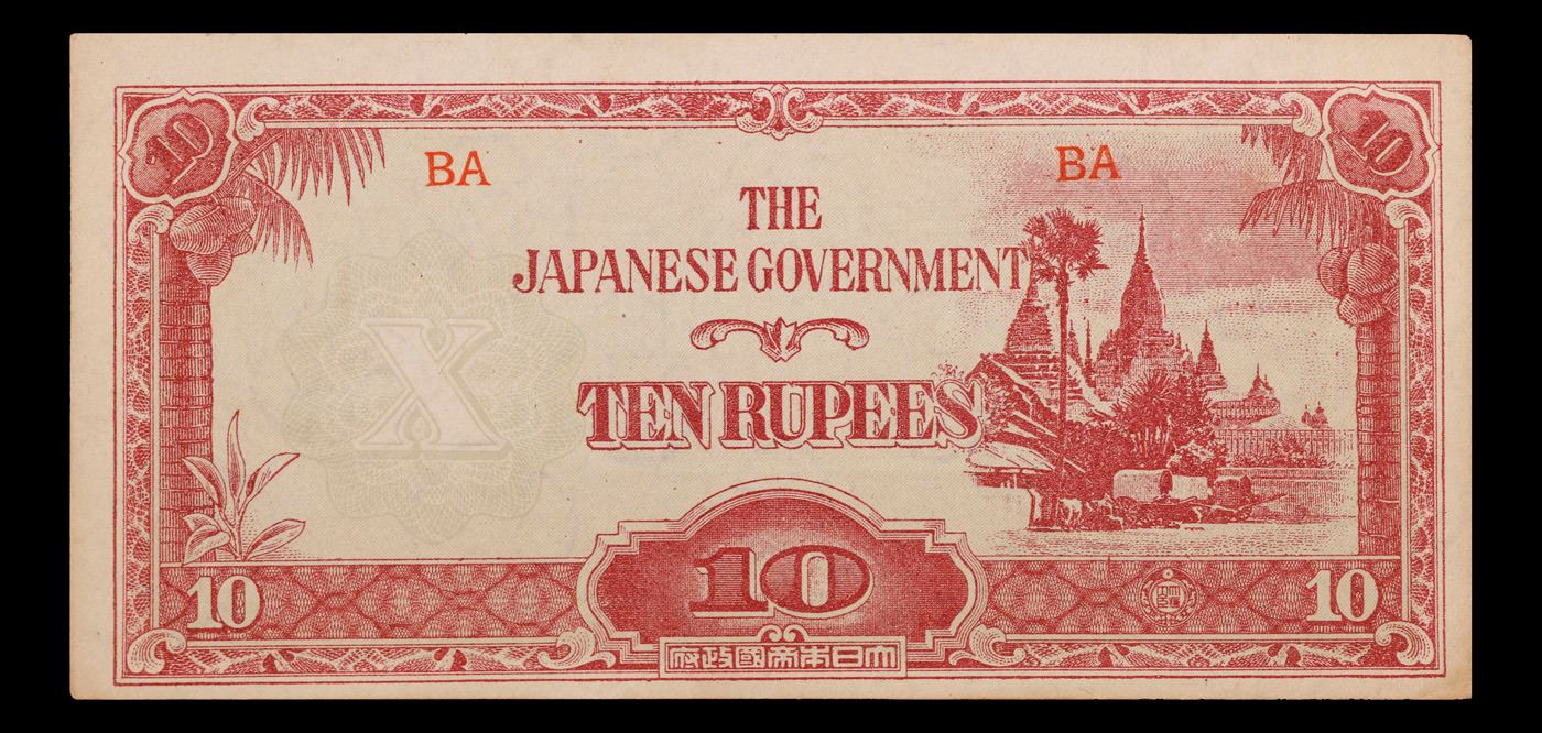 1942-1944 Burma Under Japanese Occupation (JIP) 10 Rupee Note P: 16A Grades Select AU