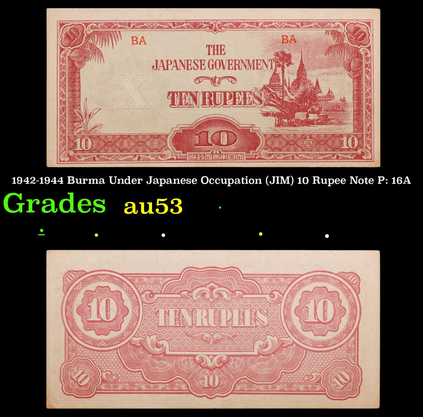 1942-1944 Burma Under Japanese Occupation (JIP) 10 Rupee Note P: 16A Grades Select AU.
