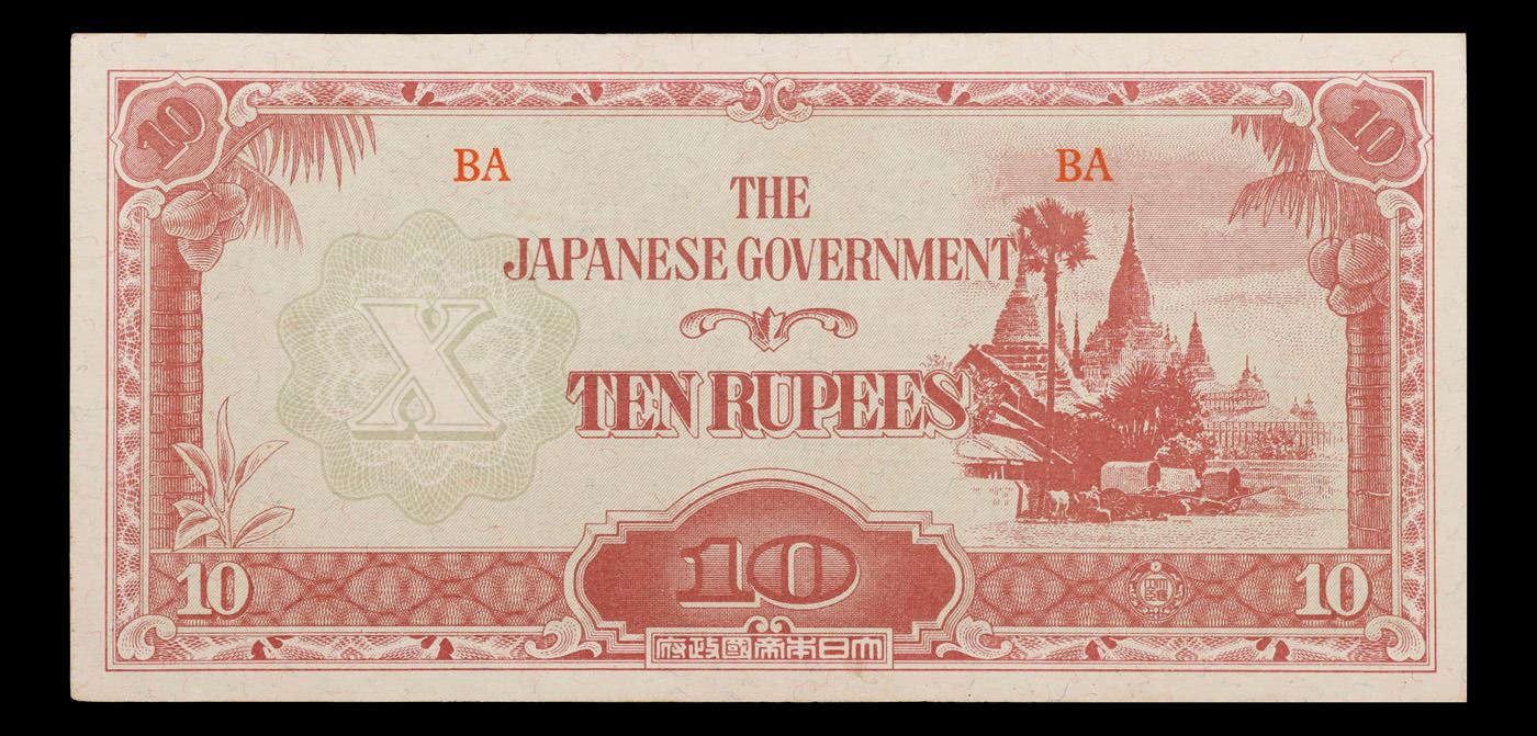 1942-1944 Burman (Under Japanese Occupation) 10 Rupee Note P# 16A Grades Select AU.