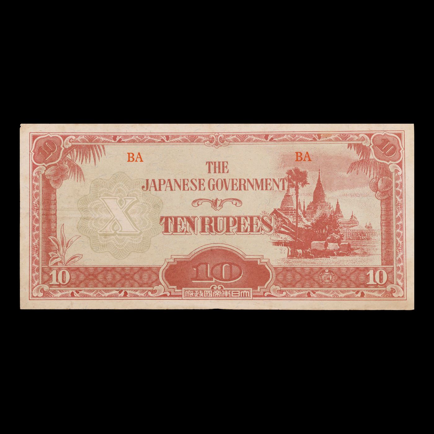 1942-1944 Burman (Under Japanese Occupation) 10 Rupee Note P# 16A Grades Select CU.