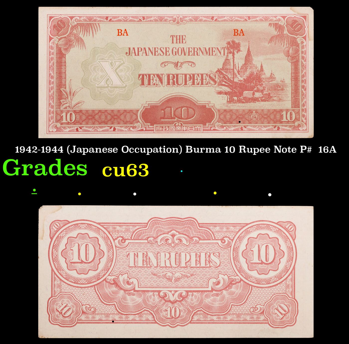 1942-1944 (Japanese Occupation) Burma 10 Rupee Note P# 16A Grades Select CU.