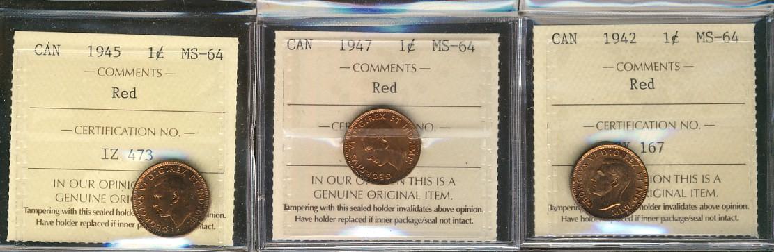 1942, 1945 & 1947 1¢ ICCS MS64RD.