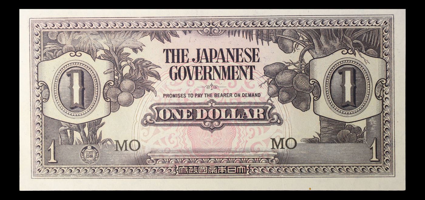 1942-1945 Malaysia (Japanese WWII Occupation) 1 Dollar "Banana Money" Banknote P# M5c Grades Select CU. After Japanese forces occupied Malaya early in 1942, they introduced new currency notes. Because the $10 note carried a picture of a banana plant, the wartime currency was referred to as banana money. For the first two years of the occupation, the Japanese maintained monetary discipline and kept circulation of this currency under control. However, with the country’s trading economy at a standstill, there was little to tax and, in order to fund the civil administration and purchase supplies for the military, the Japanese began printing more and more money. In December 1940, the active circulation of currency in Malaya was 120 million dollars. By the middle of 1945, the Japanese may have printed 4,000 million dollars, and the active circulation was 30 times greater than before the war. The predictable result was hyperinflation.