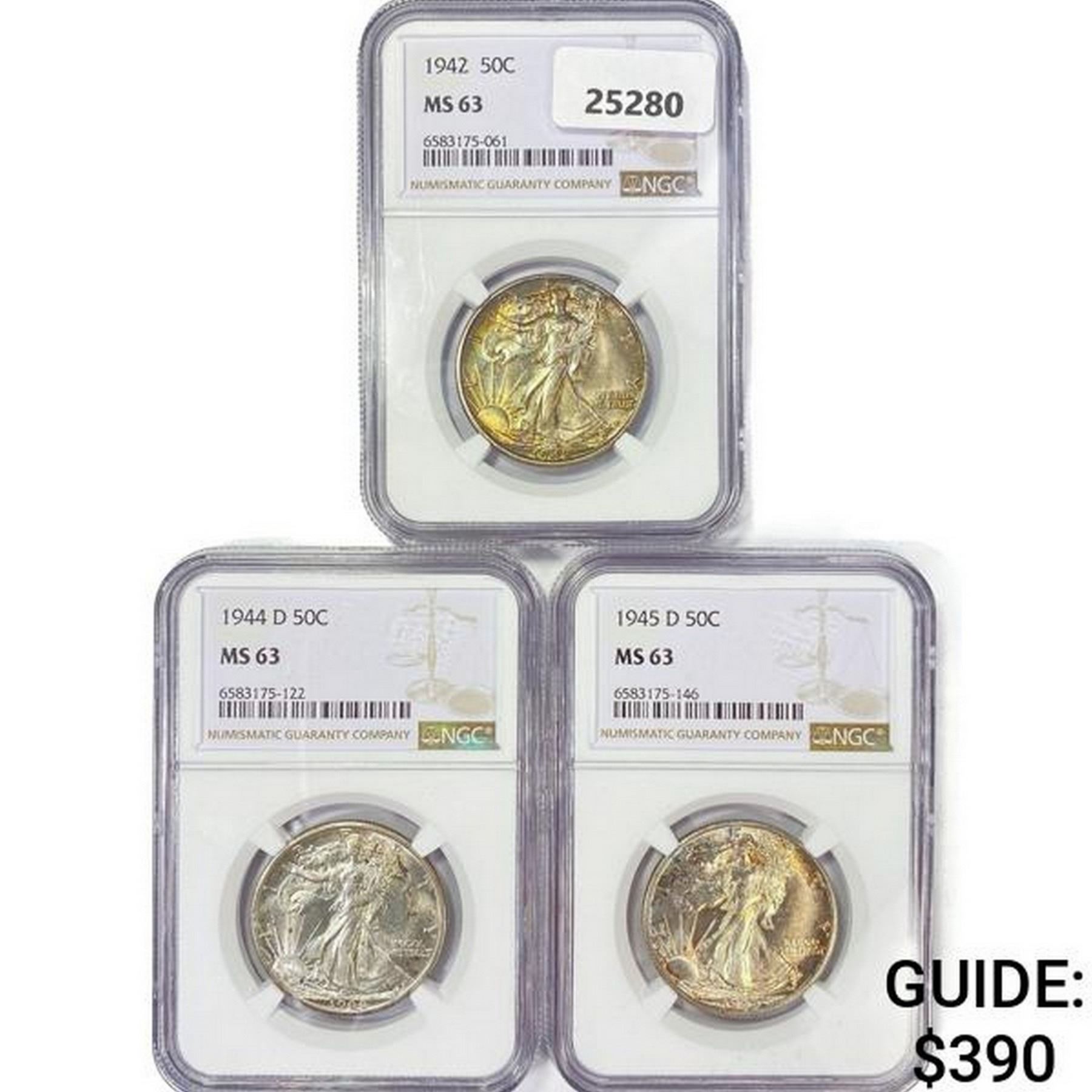 1942-1945 Set (3) Walking Liberty Half Dollar NGC