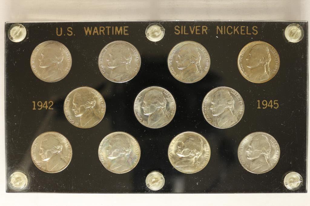 CASE, 11-35% SILVER JEFFERSON WAR NICKELS ALL BRILLIANT UNC