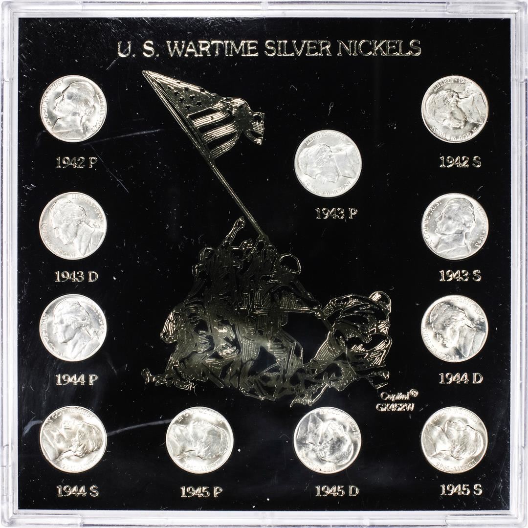 One 1942-1945 US Wartime Silver Nickel Coin Set in Plastic.
