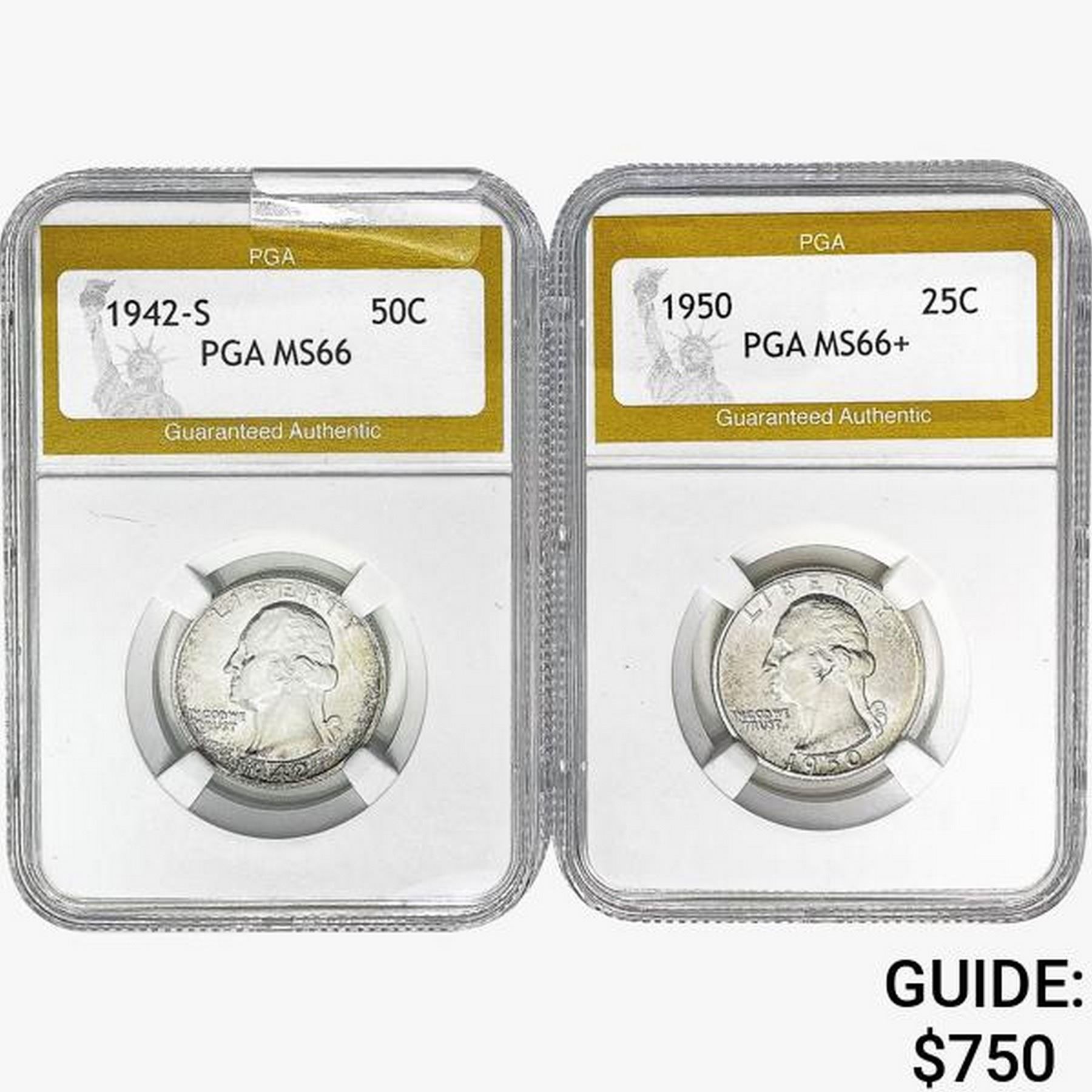 1942-1950 [2] Washington Silver Quarter PGA MS66
