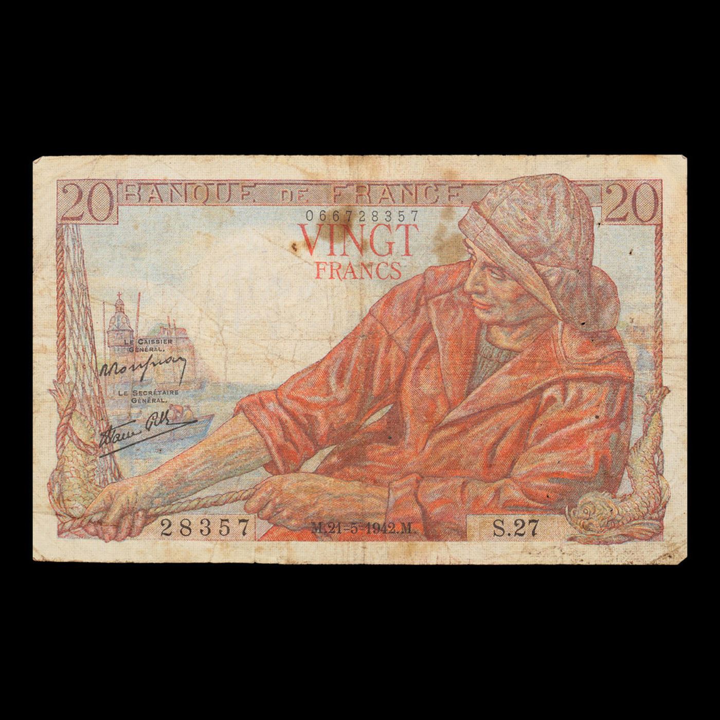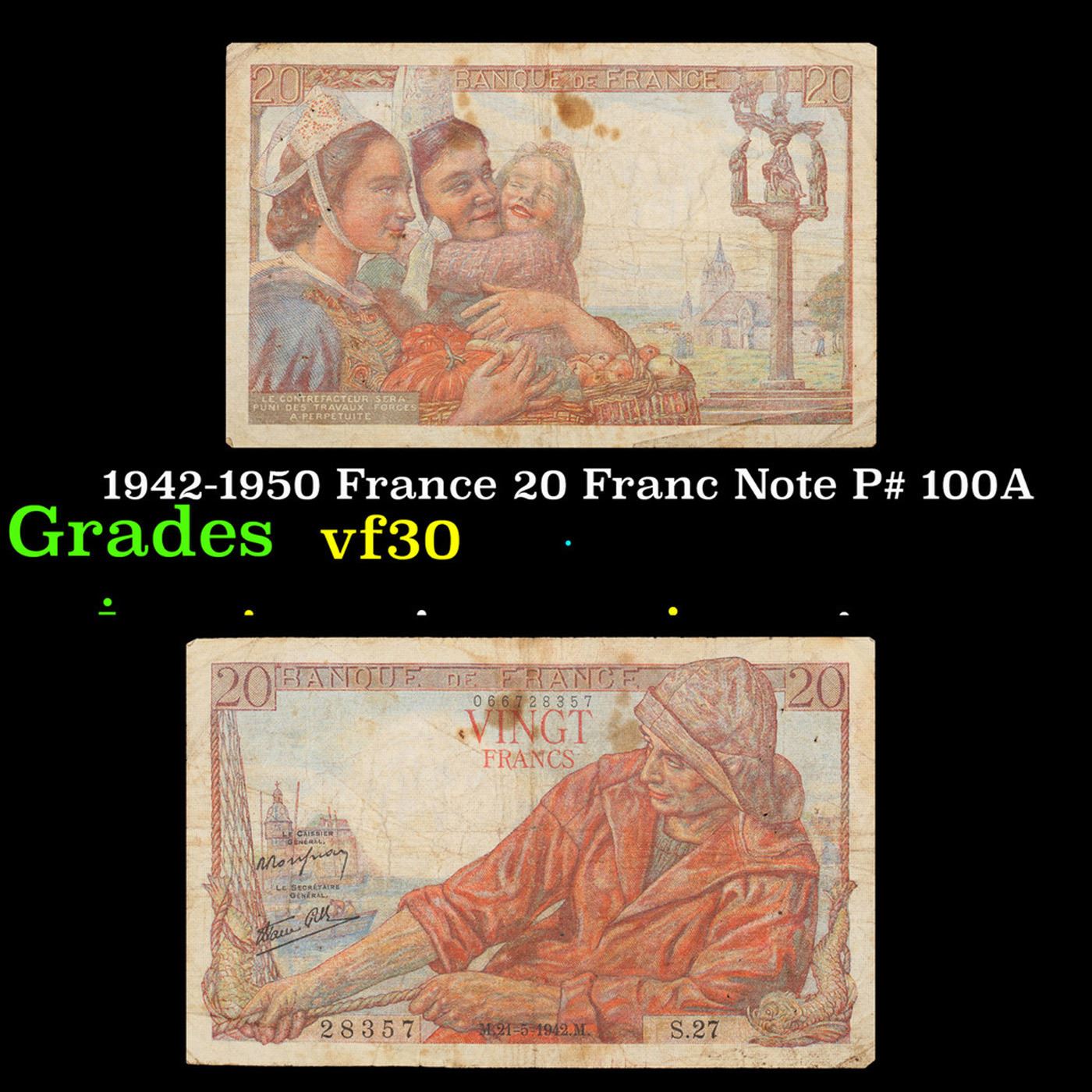 1942-1950 France 20 Franc Note P# 100A Grades vf++.