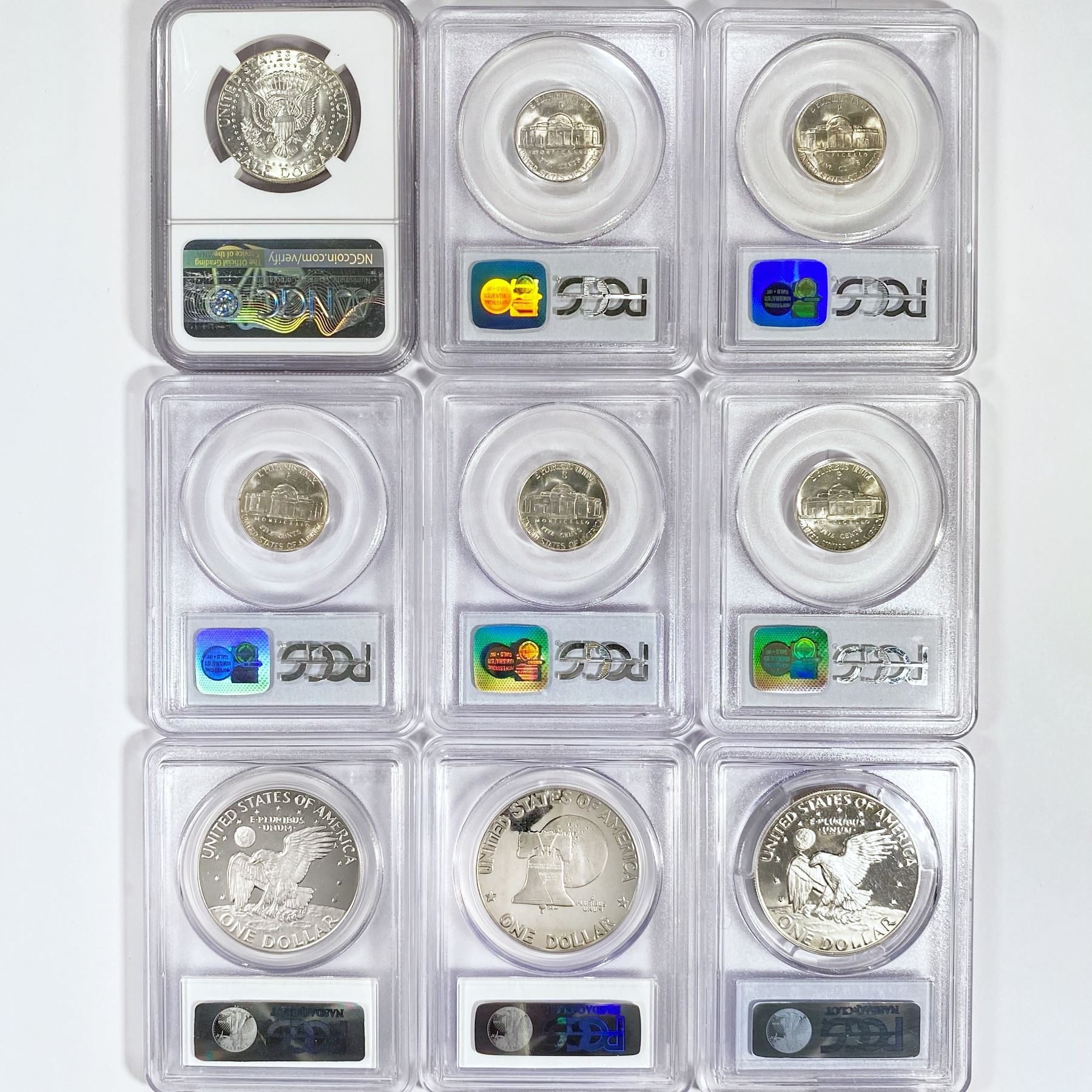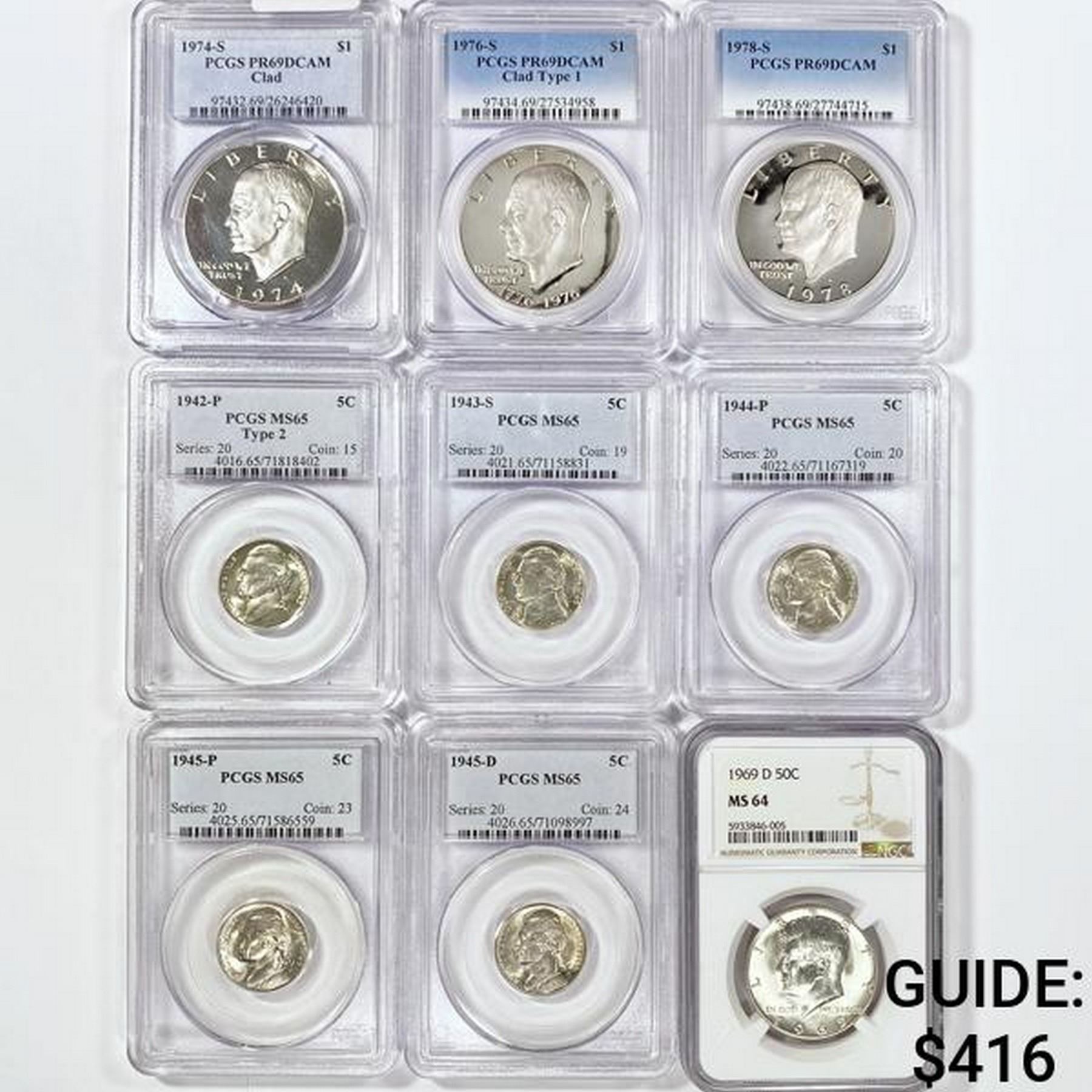 1942-1978 Set(9) 3 Ike $1, 5 Jefferson 5C, Kennedy