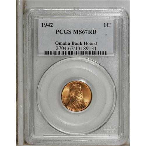 1942 1C MS67 Red PCGS. Ex: Omaha Bank Hoard. PCGS