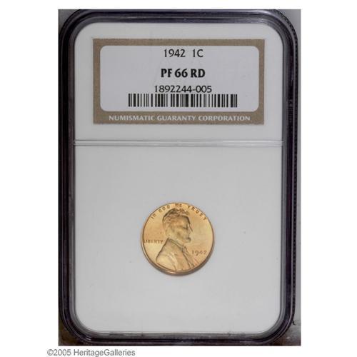1942 1C PR66 Red NGC. Well struck with golden-orange p 1942[1C] PR66 Red NGC.