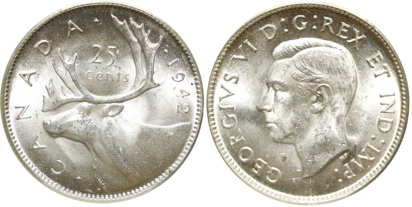 1942 25¢ CCCS/ICCS Gem Mint State-65. Lustrous white with frost finish.