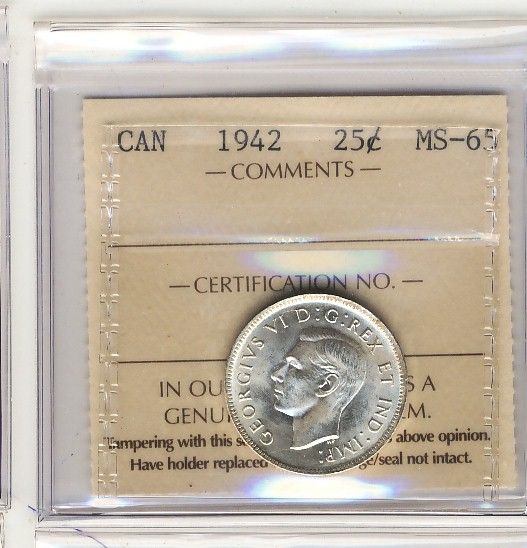 1942 25¢ ICCS MS65. A true Gem.