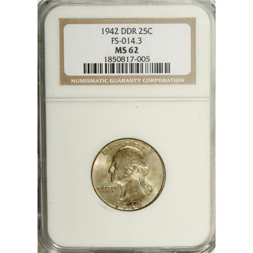 1942 25C Doubled Die Reverse MS62 NGC. FS-25-1942-801.