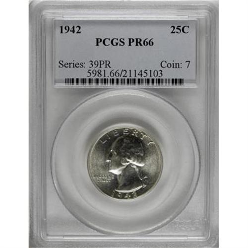<B>1942 25C PR66 PCGS.</B></I> PCGS Population (896/158). NGC Census: (600/190). Mintage: 21,123. Numismedia Wsl. Price for NGC/PCGS coin in PR66: $164. (#5981)<BR><BR><B>Coin Engraver:</B> John Flanagan<BR><BR><b>Shipping:</b> Coins & Currency (<a target="_blank" href="http://www.heritageauctions.com/common/shipping.php">view shipping information</a>)
