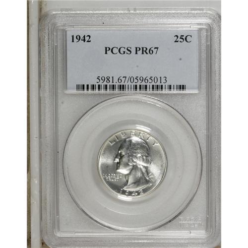 <B>1942 25C PR67 PCGS.</B></I> Crisply detailed and immaculately preserved. A brilliant, lovely Superb Gem proof quarter from the World War II era.<BR><BR><b>Shipping:</b> Coins & Currency (<a target="_blank" href="http://www.heritageauctions.com/common/shipping.php">view shipping information</a>)