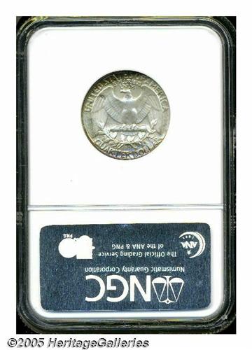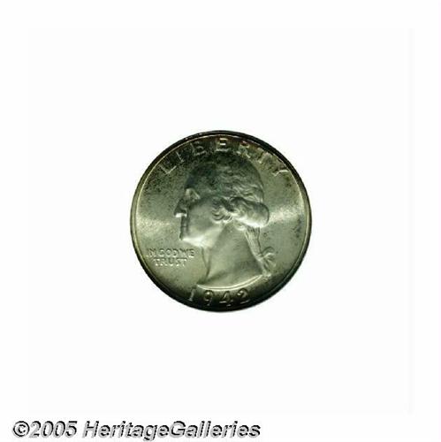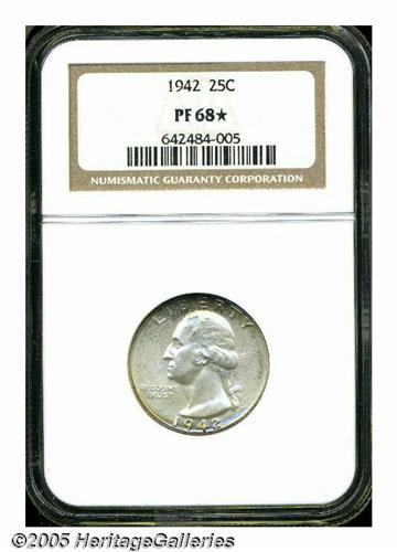 <B>1942<25C> PR68 <S NGC.</B></I> Slender, beautiful bands of ruby-red, apple-green, and lemon color endow the peripheries of this pinpoint-sharp Superb Gem, while rich cream-gray color invigorates the devices and fields. Essentially immaculate, as expected of the grade. The final year of the scarce 1936 to 1942 proof run, since the wartime economy had greater priorities than the service of collectors. Proof production of the type would not resume until 1950. Population: 3 in 68 <S, 1 finer (6/05).
