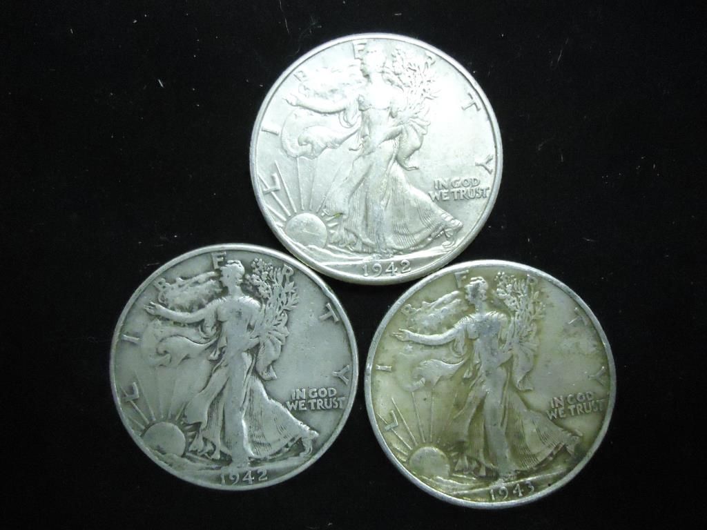 1942,42 & 43-D WALKING LIBERTY HALF DOLLARS