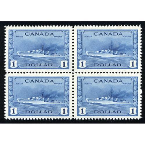 <Our item number 138682><B>1942-43, 1¢-$1 King George VI "War" definitives complete. Scott <B>249-262</B>. S.G. 375-388. Unitrade 249-262; C$500.</B> A fresh, clean set in blocks of four. Two of the sets of singles will be NH. Block of 4. OG/LH/NH. <BR>Estimated Value $150 - 250. <BR><BR>Our item number 138682<BR><IMAGES><P ALIGN="CENTER"><IMG SRC="http://www.goldbergcoins.net/liveauction/49jpegs/138682.jpg"> </P></IMAGES>
