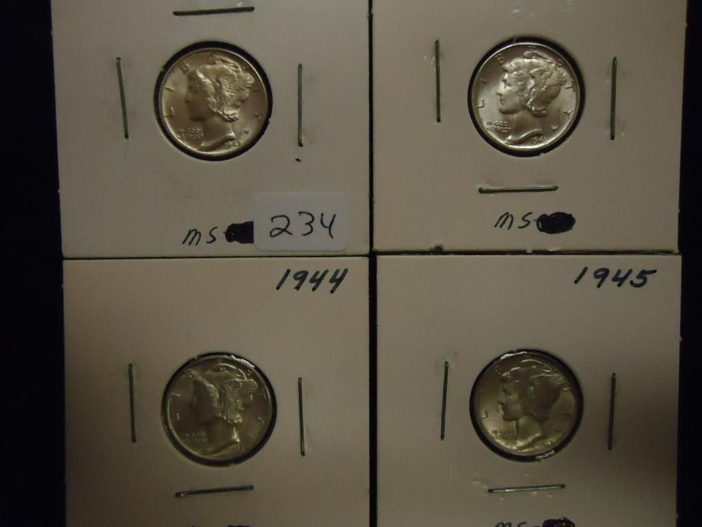 1942,43,44 & 45 MERCURY DIMES (UNC)