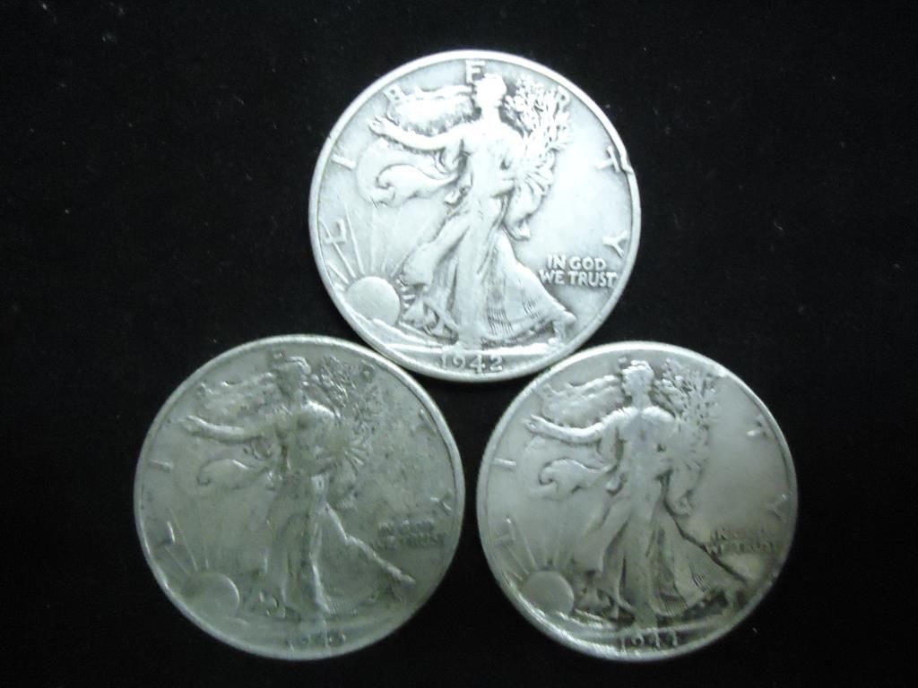 1942,43 & 44 WALKING LIBERTY HALF DOLLARS