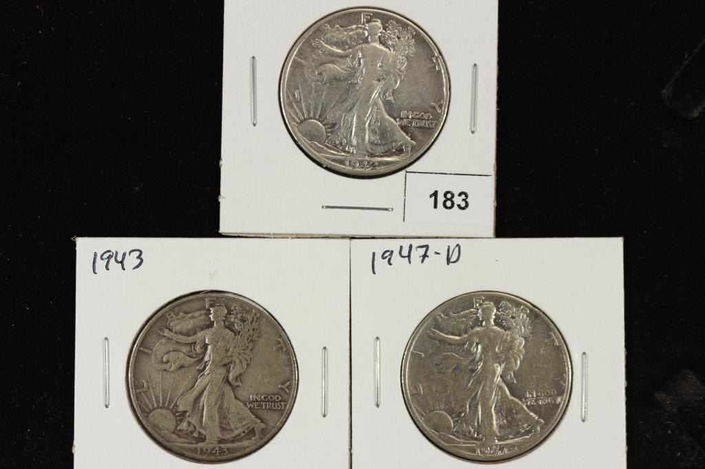 1942,43 & 47-D WALKING LIBERTY HALF DOLLARS