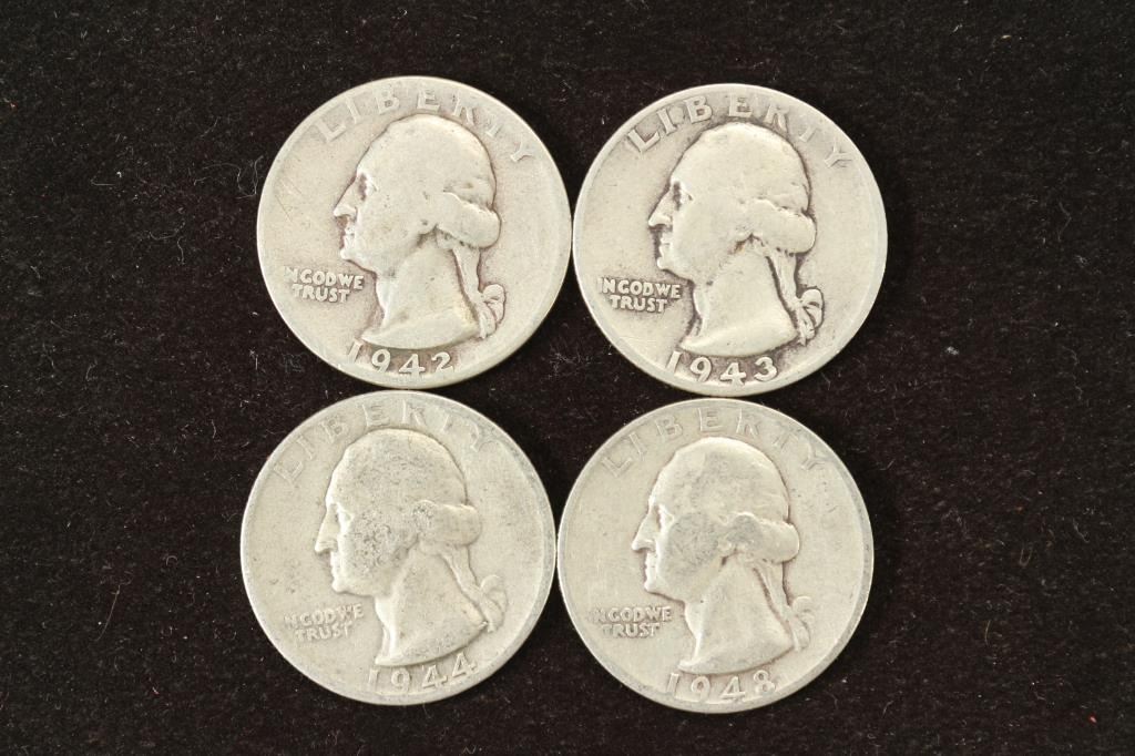 1942,43-D,44-S & 48-S WASHINGTON SILVER QUARTERS