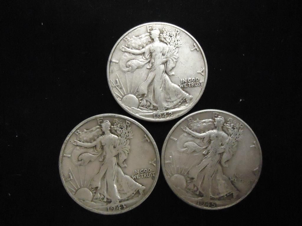 1942,43-S & 45 WALKING LIBERTY HALF DOLLARS