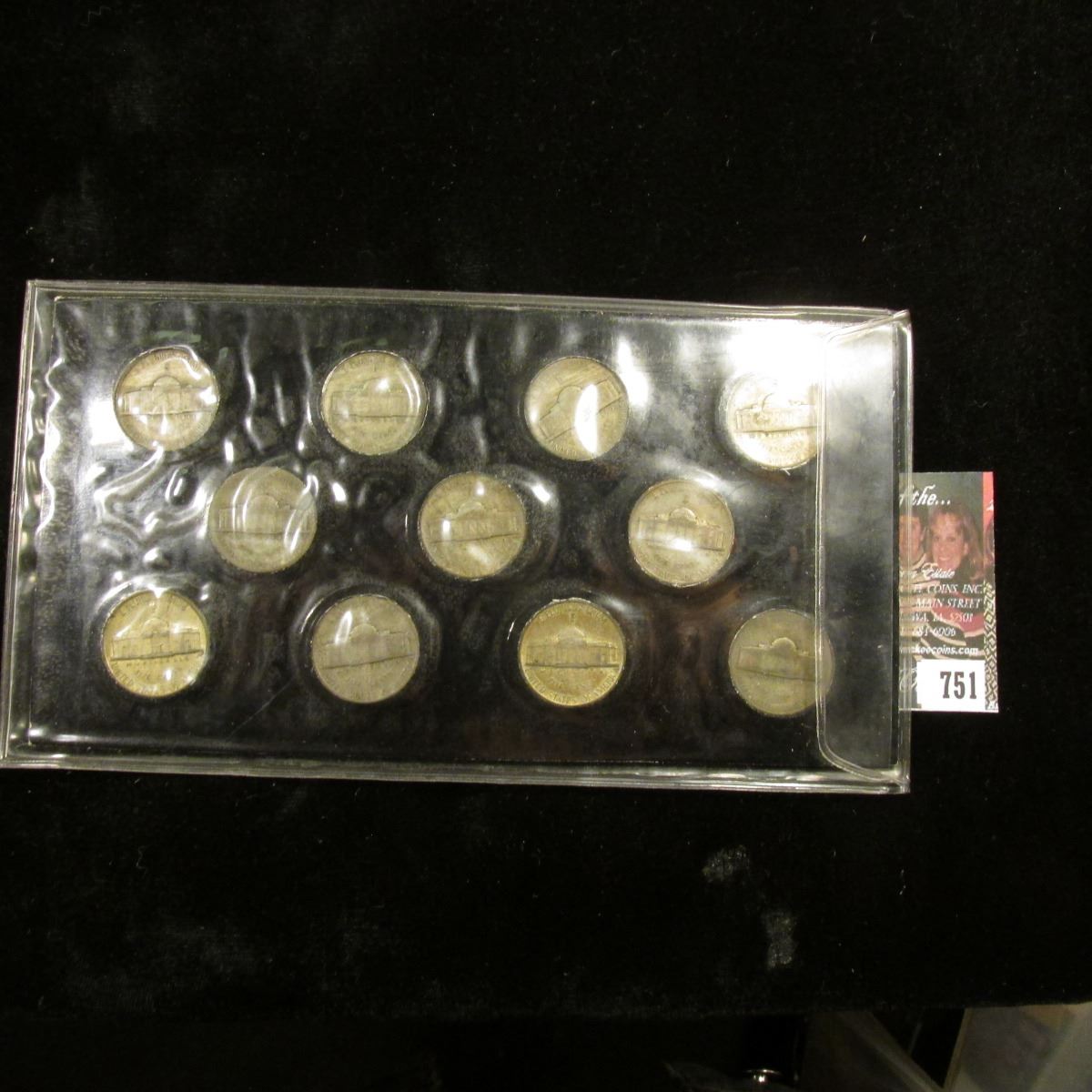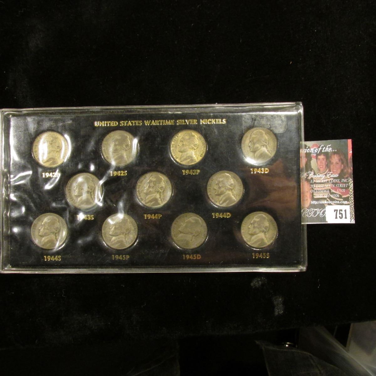 1942-45 Complete 11 pc. Set of World War II Silver Nickels in a special holder.