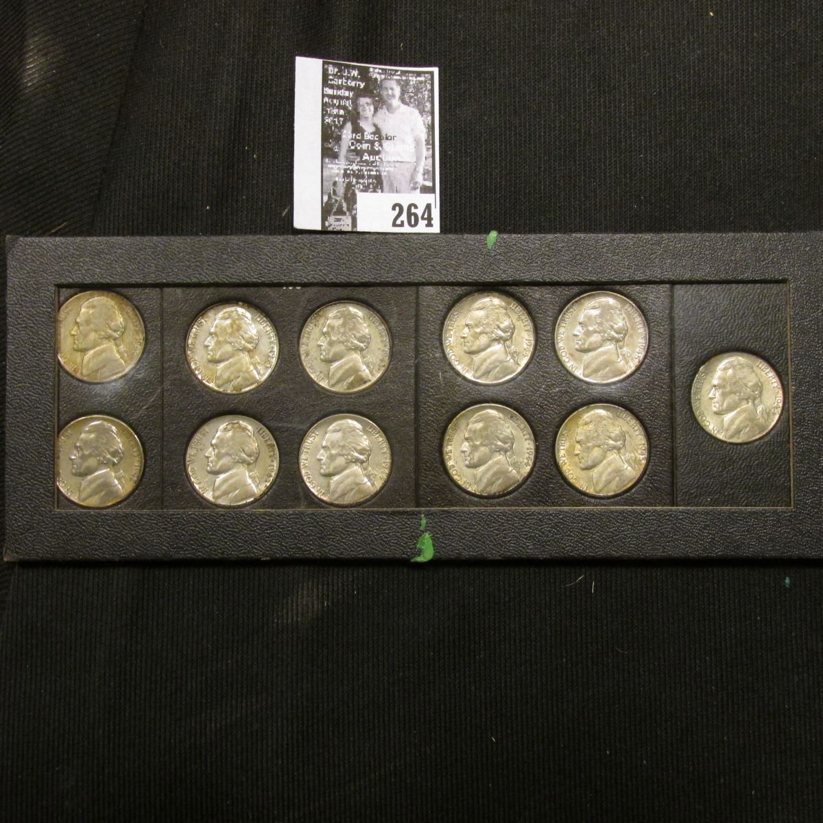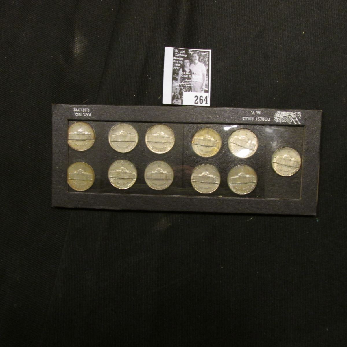 1942-45 Complete Set of U.S. Silver World War II Nickels in an old Wayte Raymond Coin frame. EF-AU.