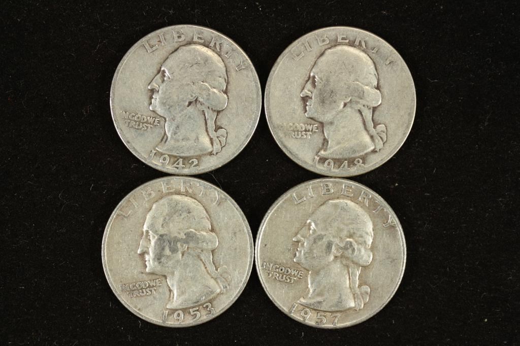 1942,48,53-S & 57-D WASHINGTON SILVER QUARTERS