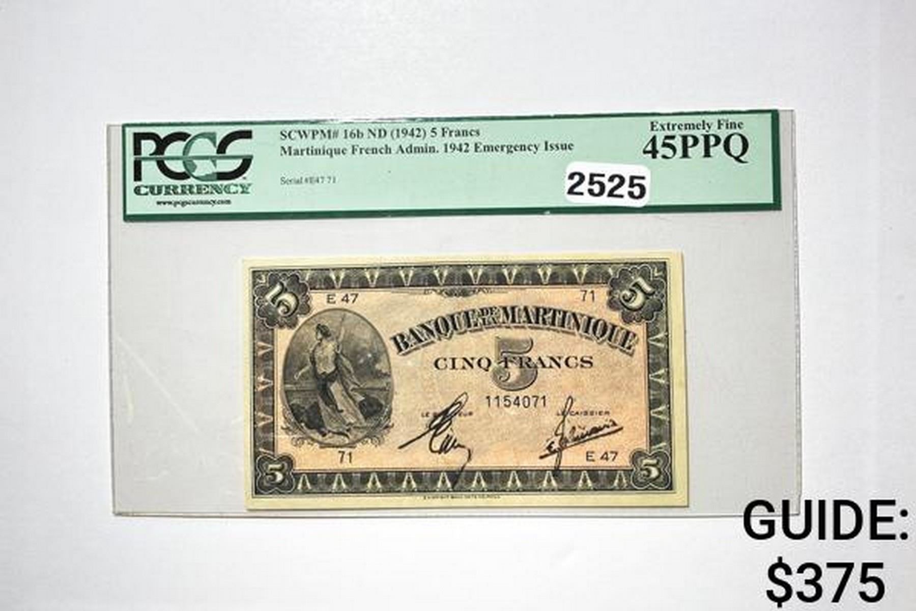 1942 5 Francs Martinique-Emer. Issue PCGS 45 PPQ