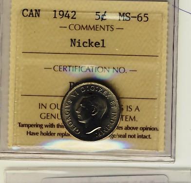 1942 5¢ Nickel ICCS MS65.
