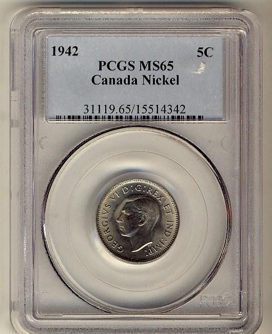 1942 5¢ Nickel PCGS MS65, a superb GEM example.