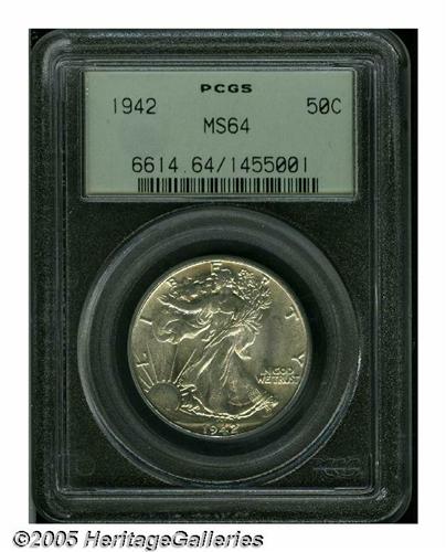 <B>1942<50C> MS64 PCGS.</B></I> Well struck with bright satin luster and mostly untoned surfaces that reveal a trace of pale lilac color in the right obverse field. Several faint grazes in the right obverse field prevent the Gem grade assessment.