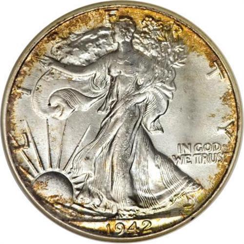 <B>1942 50C MS65 NGC.</B></I> Golden-brown freckles endow the peripheries of this crisply struck and highly lustrous Gem. A magnificent World War II-era souvenir. Encased in a former generation holder.<BR><BR><B>Coin Engraver:</B> Adolph A. Weinman<BR><BR><b>Shipping:</b> Coins & Currency (<a target="_blank" href="http://www.heritageauctions.com/common/shipping.php">view shipping information</a>)