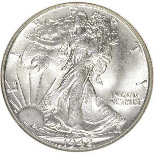 <B>1942 50C MS65 NGC.</B></I> NGC Census: (3986/2269). PCGS Population (5437/2319). Mintage: 47,839,120. Numismedia Wsl. Price for NGC/PCGS coin in MS65: $124. (#6614)<BR><BR><B>Coin Engraver:</B> Adolph A. Weinman<BR><BR><b>Shipping:</b> Coins & Currency (<a target="_blank" href="http://www.heritageauctions.com/common/shipping.php">view shipping information</a>)