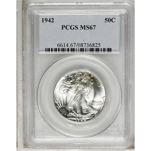 <B>1942<50C> MS67 PCGS.</B></I> A boldly struck and brilliant Superb Gem that gleams. A magnificently preserved example that sports flashy luster. PCGS has certified just four examples finer (8/06).