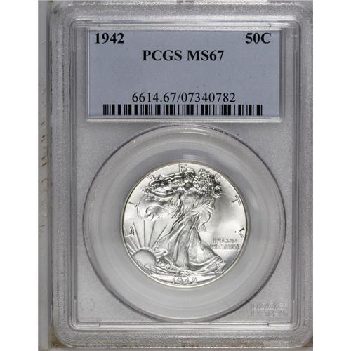 1942 50C MS67 PCGS. A brilliant and solidly struck Sup