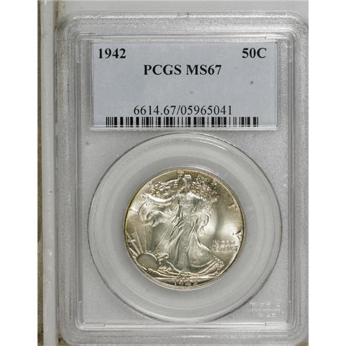 1942 50C MS67 PCGS. This piece has full mint bloom and