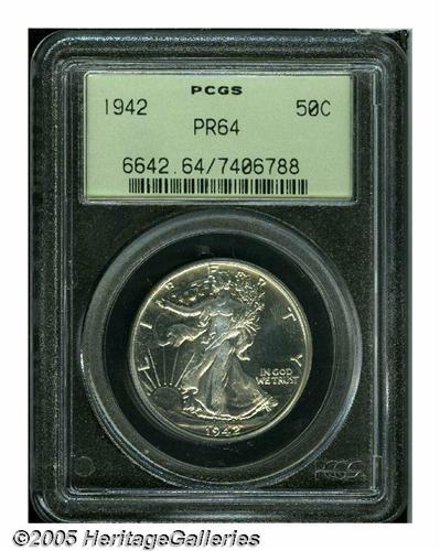 <B>1942<50C> PR64 PCGS.</B></I> A lovely Proof with deeply mirrored fields. The devices have pale toning which resembles cameo contrast.