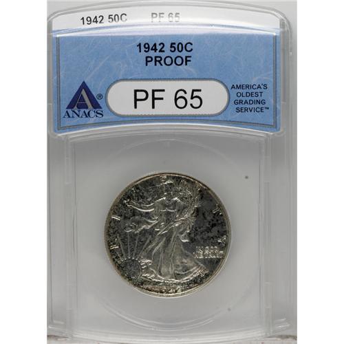 <B>1942 50C PR65 ANACS.</B></I> NGC Census: (1660/4080). PCGS Population (1553/2165). Mintage: 21,120. Numismedia Wsl. Price for NGC/PCGS coin in PR65: $590. (#6642)<BR><BR><b>Shipping:</b> Coins & Currency (<a target="_blank" href="http://www.heritageauctions.com/common/shipping.php">view shipping information</a>)