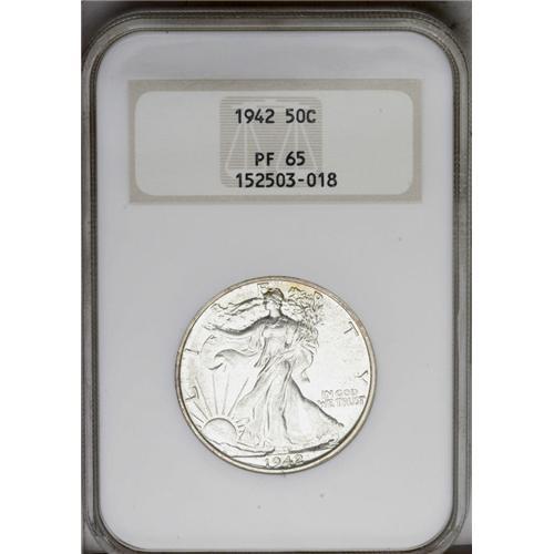1942 50C PR65 NGC. Light gold freckles deny full brill 1942[50C] PR65 NGC.
